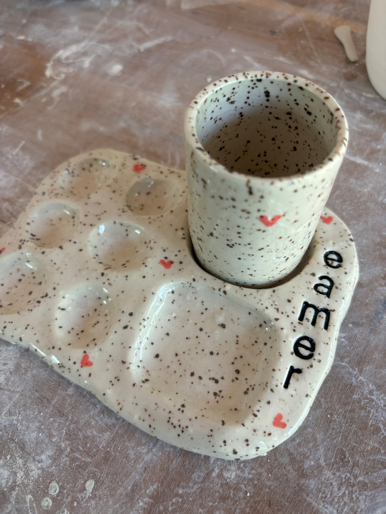 Customs can be a cup, mug, platter, etc. They can have a phrase, a color, they could be a footprint or handprint of your baby (or both!). Pictures are simply examples, happy to discuss your vision!